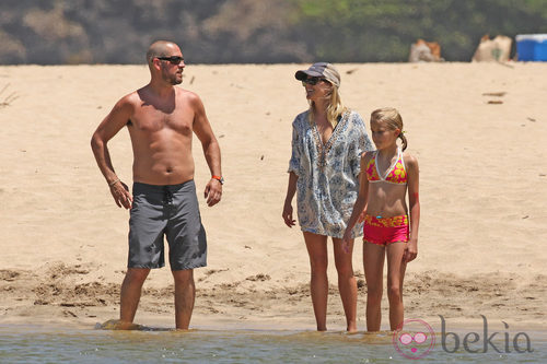 Jim Toth, Reese Witherspoon y su hija Ava en la playa durante sus vacaciones en Hawai.