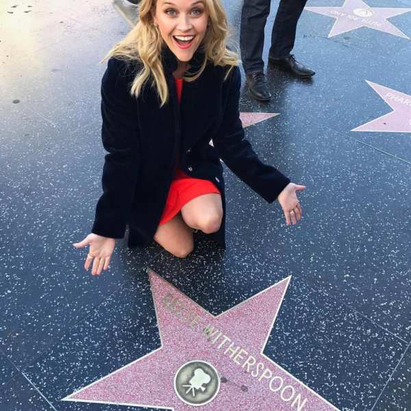 La actriz Reese Wtherspoon posa junto a su Estrella en el Paseo de la Fama de Hollywood, en el que comparte en la red social Instagram unas instantáneas cómicas en las que limpia su estrella.