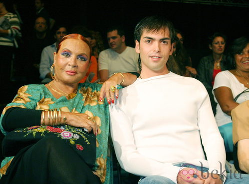 La actriz posa junto a su hijo durante la pasarela Cibeles 2004.