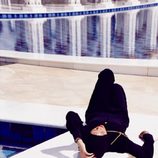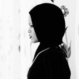 La cantante Rihanna cubriéndose la cabeza en Abu Dhabi