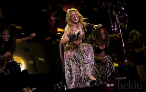 La cantante colombiana en el concierto que ofreció en el Estadio Olímpico de Barcelona.