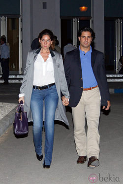 El torero Fran Rivera y su mujer Lourdes Montes en la capilla ardiente del padre de Eva González
