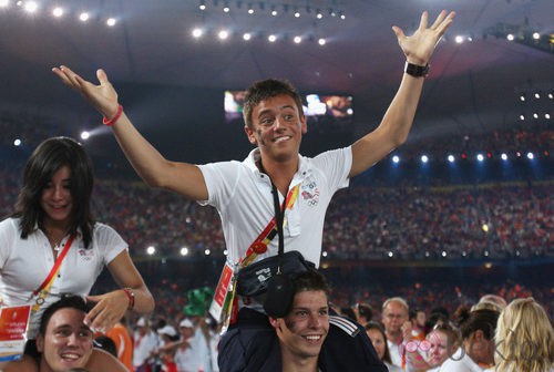 El saltador de trampolín Tom Daley en la ceremonia de clausura de los Juegos Olímpicos de Pekín 2008