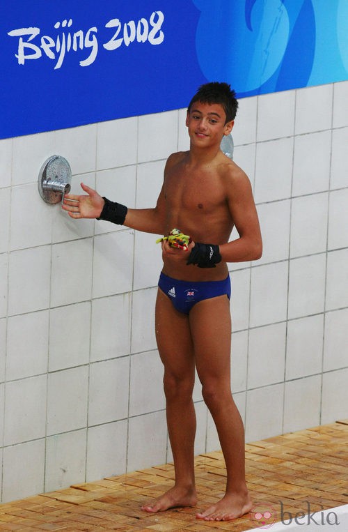 El británico Tom Daley duchándose en la piscina de los Juegos Olímpicos de Pekín 2008