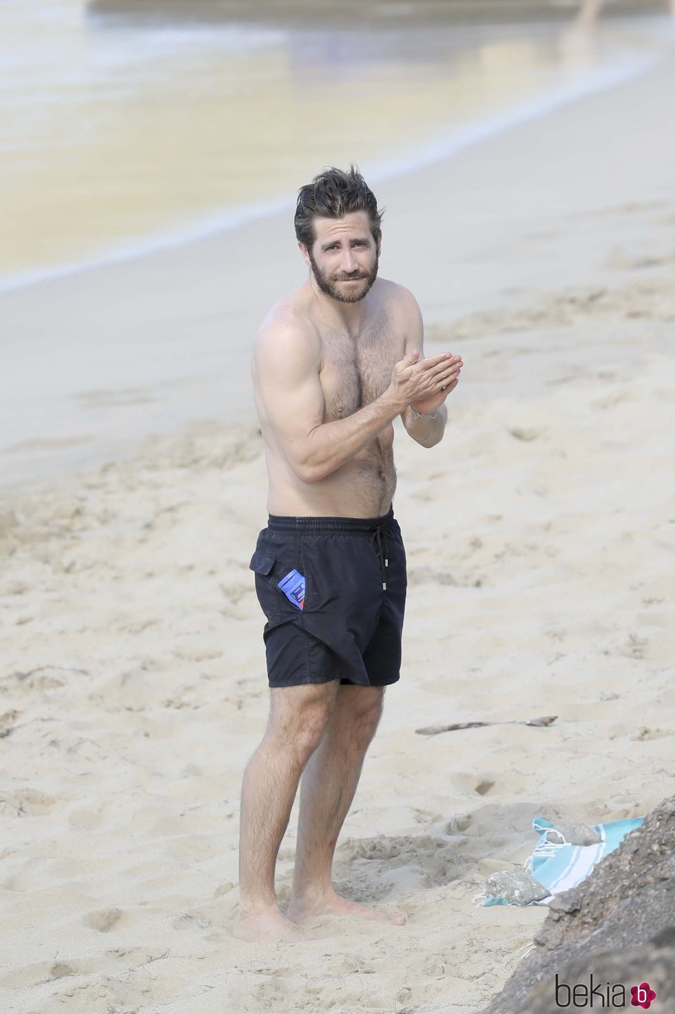 Jake Gyllenhaal estuvo en las playas de San Bartolomé disfrutando del día de Año Nuevo. El actor aparece dándose crema.