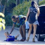 La modelo Alexa Chung se tropieza al subir un escalón y está a punto de caer