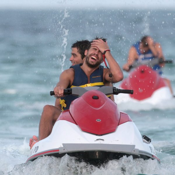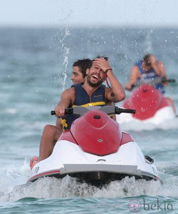 Gerard Piqué ríe montado en una moto acuática en Miami.