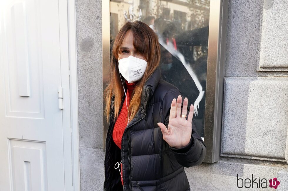 Antonia San Juan es fotografiada saliendo del velatorio abierto al público de Verónica Forqué en el Teatro Español.