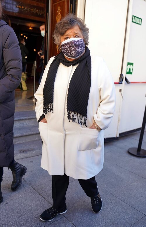 Cristina Almeida es fotografiada llegando al velatorio abierto al público de Verónica Forqué en el Teatro Español.