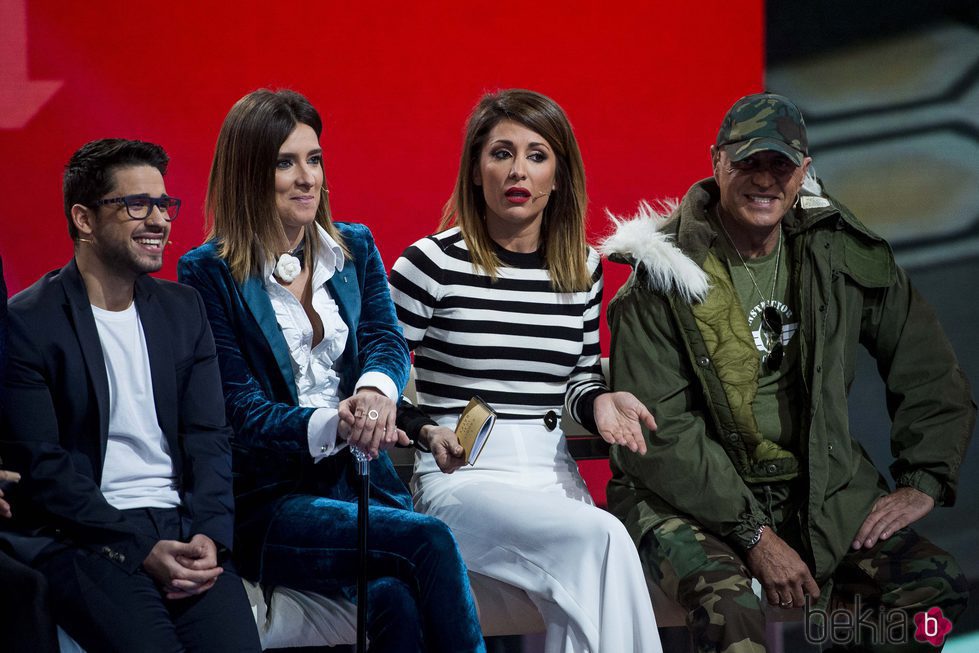 Los colaboradores Miguel Frigenti y Nagore Robles, junto a la presentadora Sandra Barneda y al 'Sargento' Kiko Matamoros en el debate de 'Gran Hermano VIP 5'