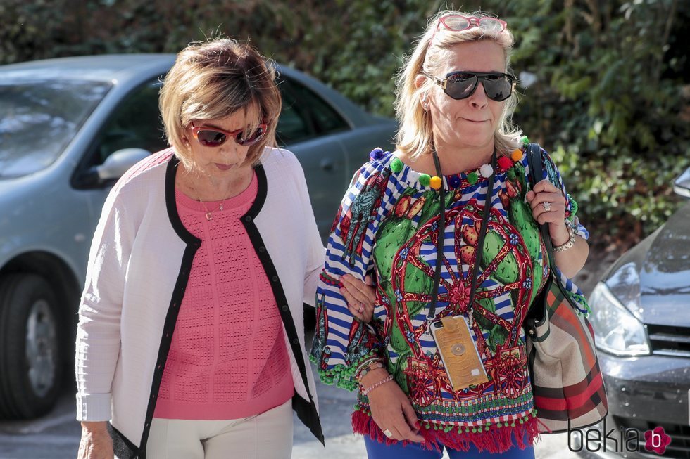 María Teresa Campos y su hija Carmen Borrego llegando al hospital para visitar a Terelu Campos tras finalizar su doble mastectomía.