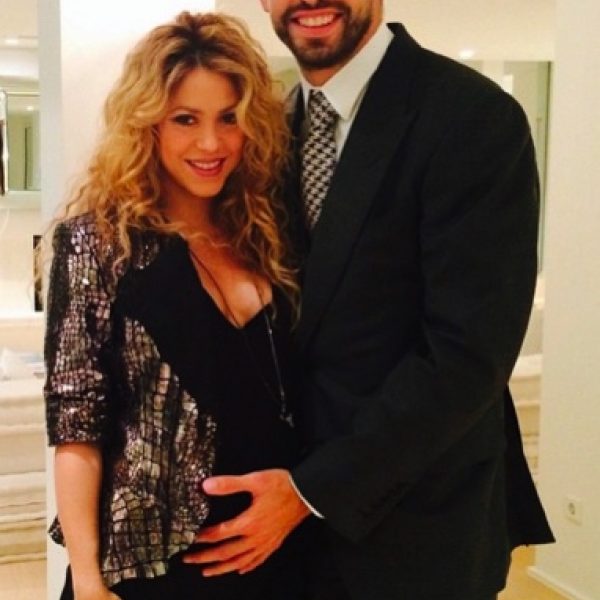 El futbolista Gerard Piqué acaricia el incipiente embarazo de Shakira