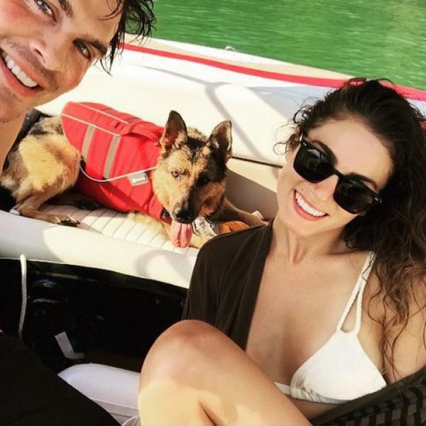Ian Somerhalder y Nikki Reed junto a su perro pasando un día de descanso dando un paseo en barca por un Lago