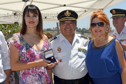 Irene Villa es galardonada por el Comisario de Policía de Estepona (Málaga) en la inauguración de la calle con su nombre en junio de 2019.