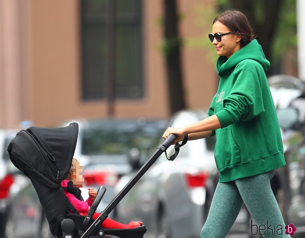 La top model internacional Irina Shayk ha salido de paseo con su hija Lea por Nueva York vestida completamente de verde.