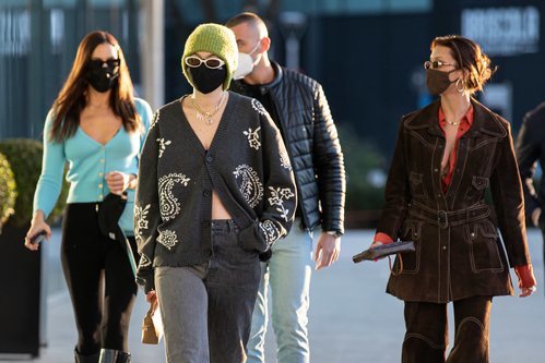 Las modelos Irina Skayk, Gigi y Bella Hadid por las calles de Milán durante la Semana de la moda el pasado marzo de 2021.