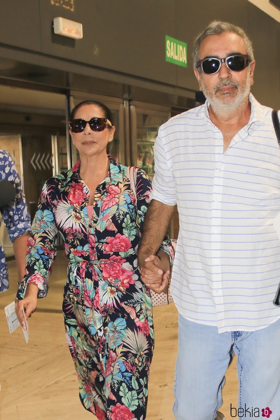 La tonadillera Isabel Pantoja con su hermano Agustín Pantoja en el aeropuerto de Sevilla para viajar a Valencia a amadrinar un evento.
