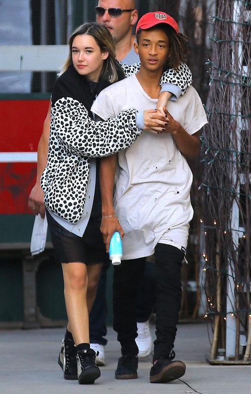 El actor y rapero Jaden Smith y su novia Sarah Snyder posando muy abrazaditos mientras daban un paseo.