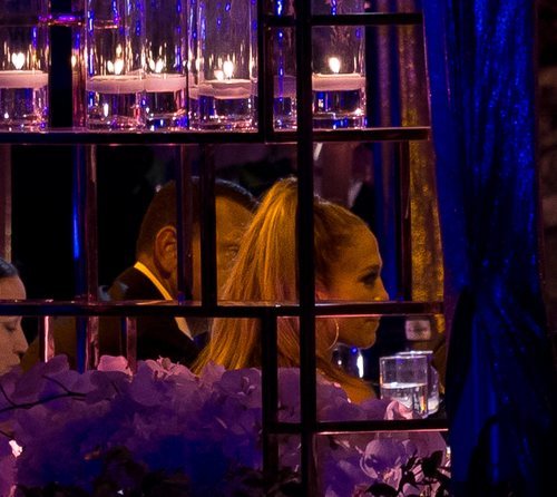 La cantante y su prometido sentados durante la gran fiesta de cumpleaños que dio Jlo en Star Island (Miami) el 24 de julio de 2019.