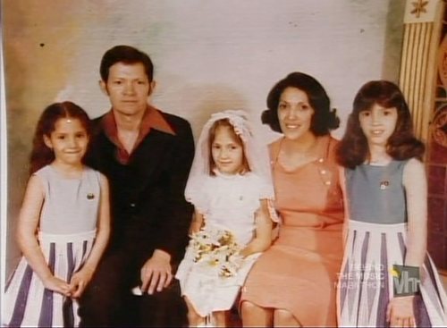 La cantante y actriz Jennifer Lopez cuando hizo su primera comunión, en la década de 1970, con sus padres, David Lopez y Guadalupe Rodriguez; y sus hermanas, Lynda y Leslie Lopez