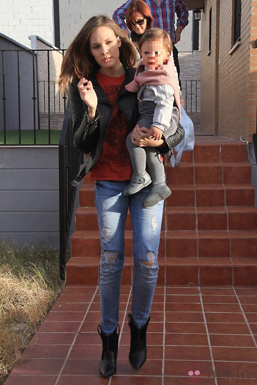 La modelo Jessica Bueno acude con su hijo Francisco a la fiesta de su primer cumpleaños