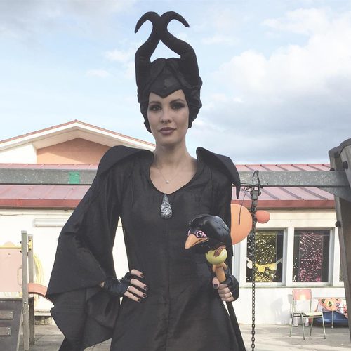 La modelo Jessica Bueno disfrazada de Maléfica celebrando Halloween 2016 en una fiesta escolar del centro educativo de su hijo Francisco Rivera Bueno
