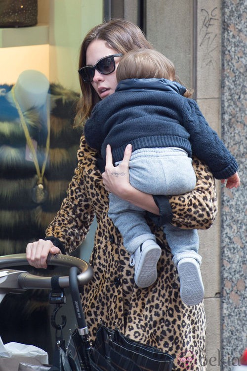La modelo Jessica Bueno pasea por Eibar con su hijo Francisco tras la visita de Kiko Rivera.