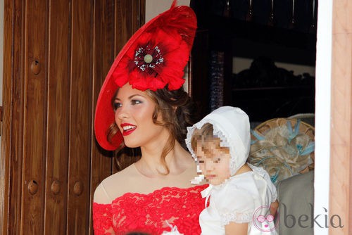 La modelo Jessica Bueno con su hijo Francisco en la boda de su prima