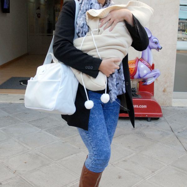 La modelo Jessica Bueno con su hijo Francisco en brazos por Sevilla