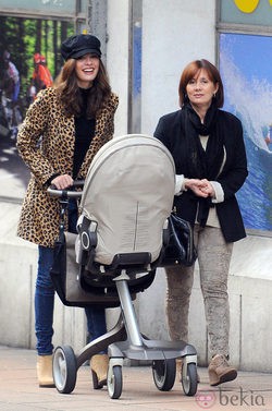 La modelo Jessica Bueno con su madre Loli Álvarez y su hijo Francisco paseando por Eibar