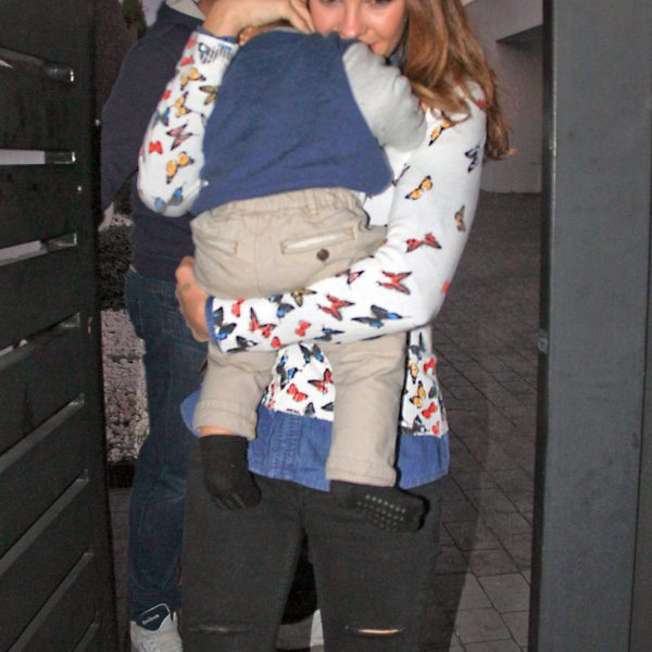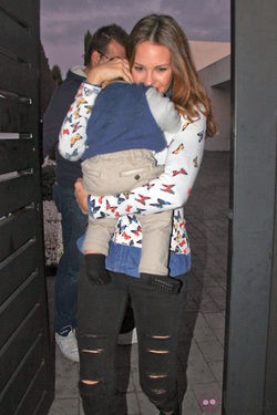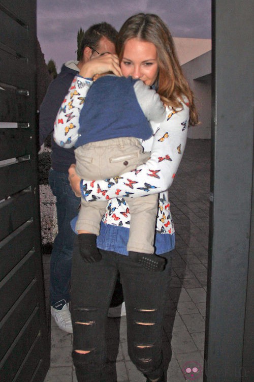 La modelo Jessica Bueno muy sonriente con su hijo Francisco en brazos