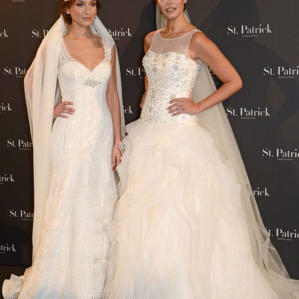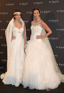 Las modelos sevillanas Jessica Bueno y Raquel Jiménez posan vestidas de novia para la firma St. Patrick en Barcelona