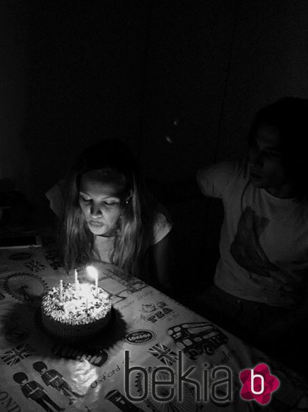 La modelo Jessica Bueno soplando las velas de su 25 cumpleaños