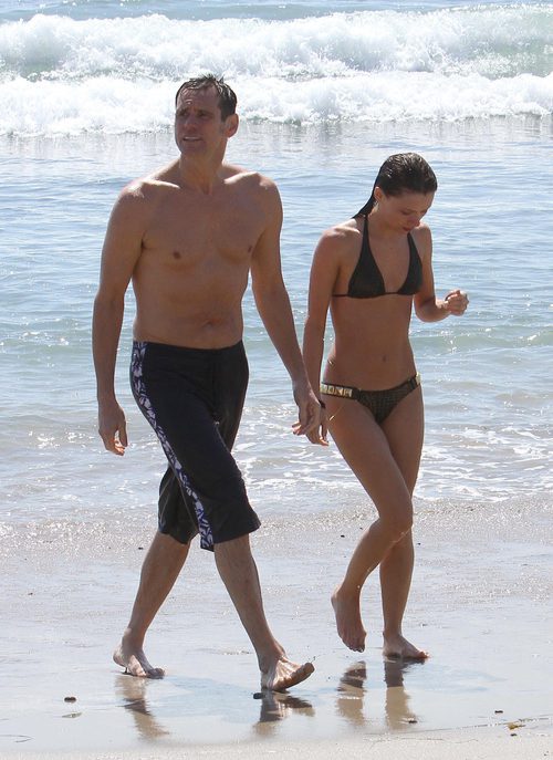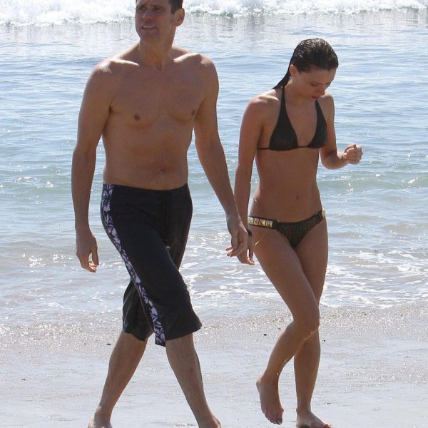 El actor Jim Carrey y su novia Cathriona White en las playas de Malibú de vacaciones