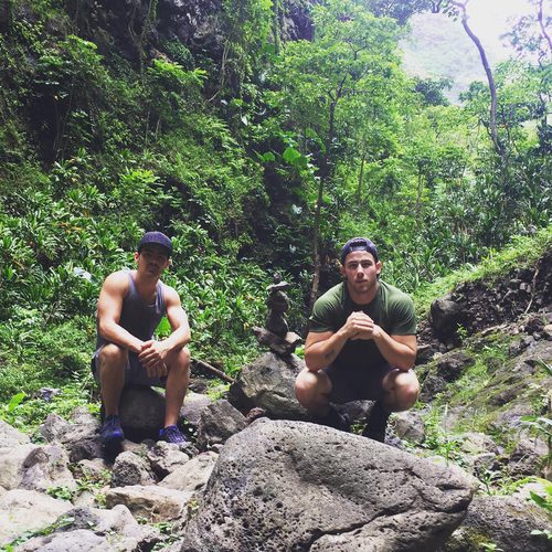Los hermanos y artistas Joe y Nick Jonas posan en plena naturaleza durante sus vacaciones en Hawaii (Estados Unidos).