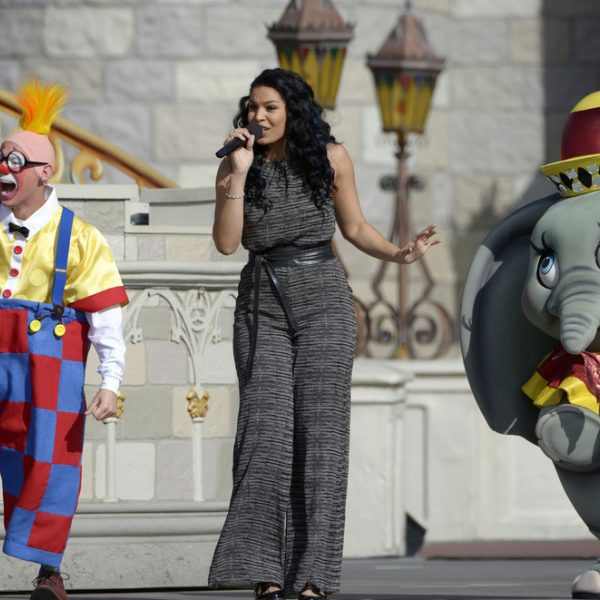 La cantante Jordin Sparks durante su actuación en la apertura de las nuevas instalaciones de New Fantasyland