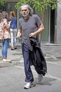 El actor José Coronado haciendo gestiones en las inmediaciones de su casa de Madrid días después de sufrir un infarto de miocardio