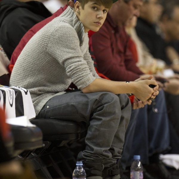 El cantante Justin Bieber asiste a un partido de Baloncesto