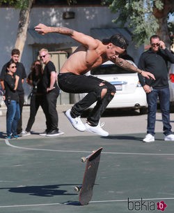 El cantante Justin Bieber dejó impresionados a unos trabajadores de Santa Mónica, California, mientras hacía skate.