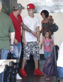 Justin Bieber junto a su padre Jeremy y su hermana Jazmyn