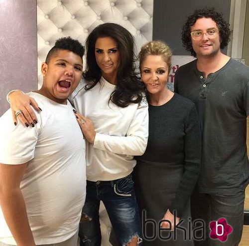 La celebrity Katie Price posa con su madre Amy, su hermano y su hijo mayor Harvey