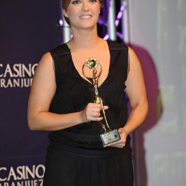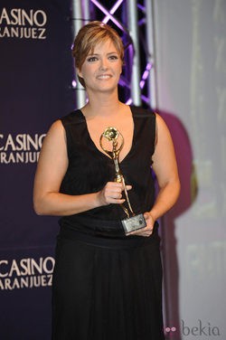 La periodista María Casado posando con el premio Antena de Oro 2011