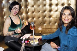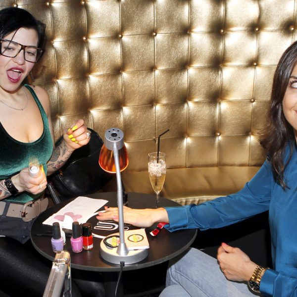 La modelo María José Suárez haciéndose la manicura en una fiesta organizada por UV Vodka