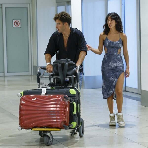 La actriz María Pedraza ha sido vista en e aeropuerto tras un viaje acompañada de su pareja, también actor, Jason Fernández.