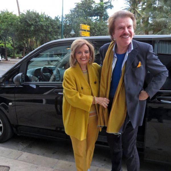 María Teresa Campos es fotografiada con Bigote Arrocet en la estación de Málaga, ambos de lo más sonrientes y cómplices.