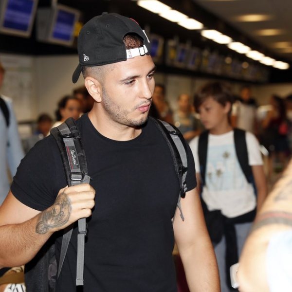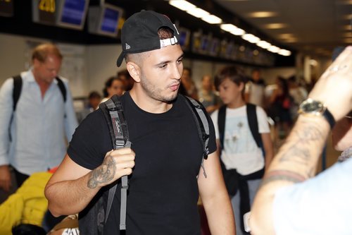 El supuesto novio de Chabelita, Omar Montes, en el aeropuerto de Madrid Barajas antes de coger un avión rumbo a Miami.