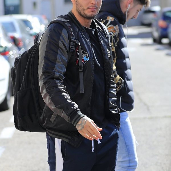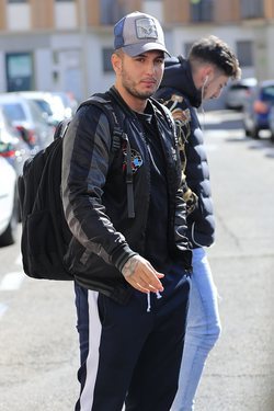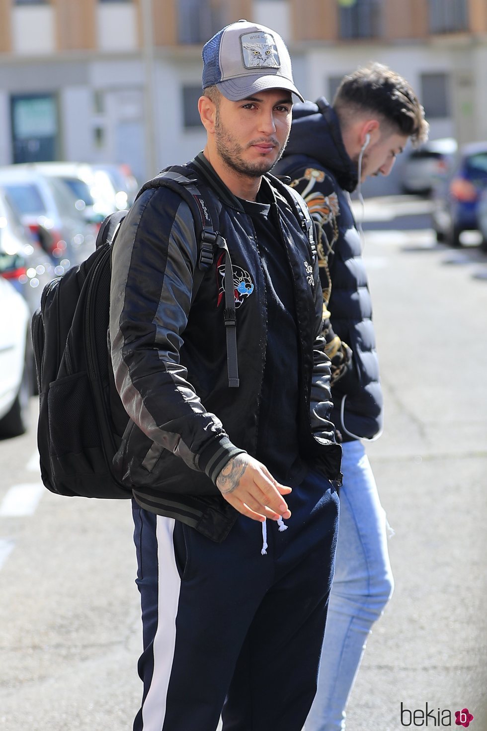 Omar Montes es fotografiado acompañado por algunos amigos paseando por las calles de Madrid atendiendo a la prensa.