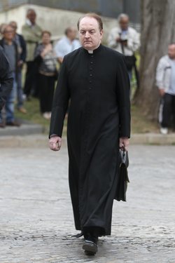 El Padre Apeles es fotografiado llegando a la capilla ardiente de Montserrat Caballé donde le dio el último adiós.