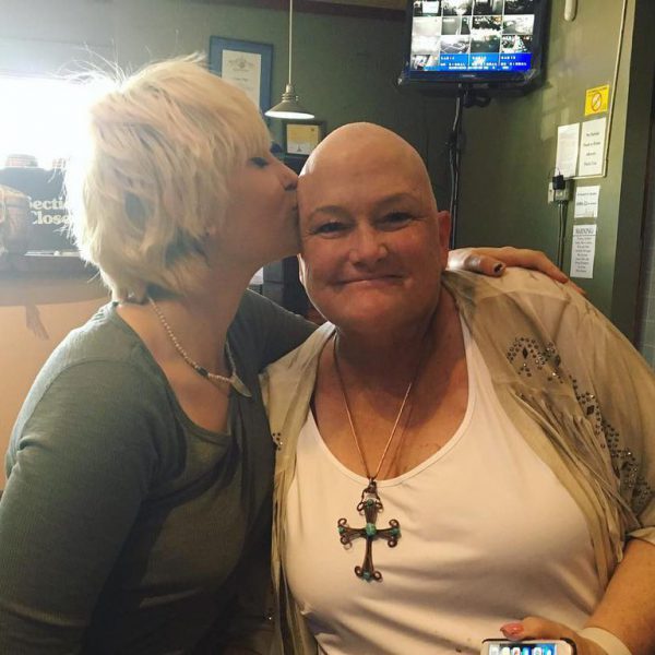 Paris Jackson está dandole un beso en la frente calva de su madre Debbie Rowe que está enferma de cáncer de mama.