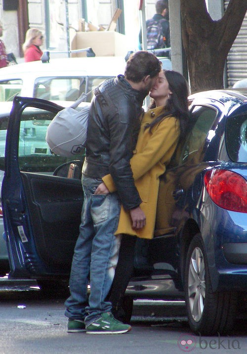 La actriz Paula Prendes besándose con su novio en las calles de Madrid.